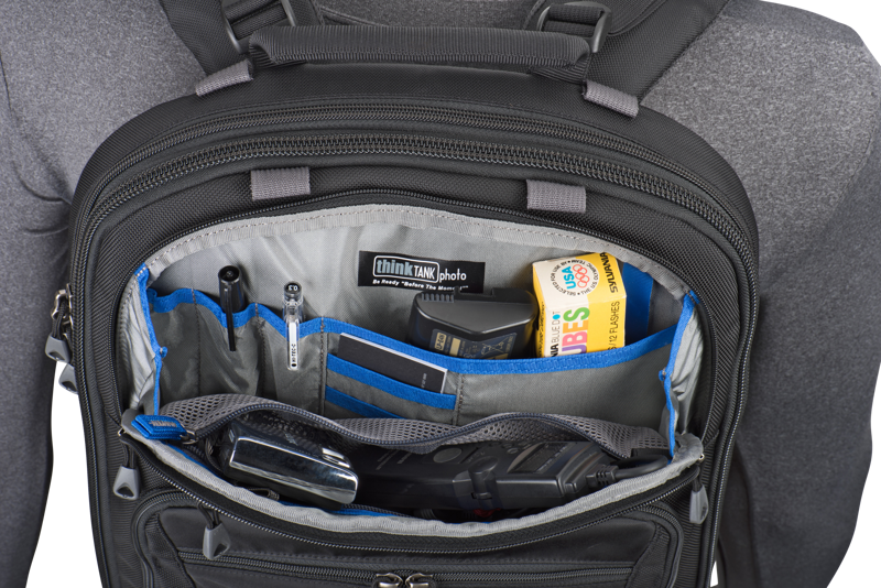 Statüüvi kinnitus esipaneelil – hoiab kaalu tasakaalus ja võimaldab varustusele ligi pääseda ilma statiivi eemaldamata